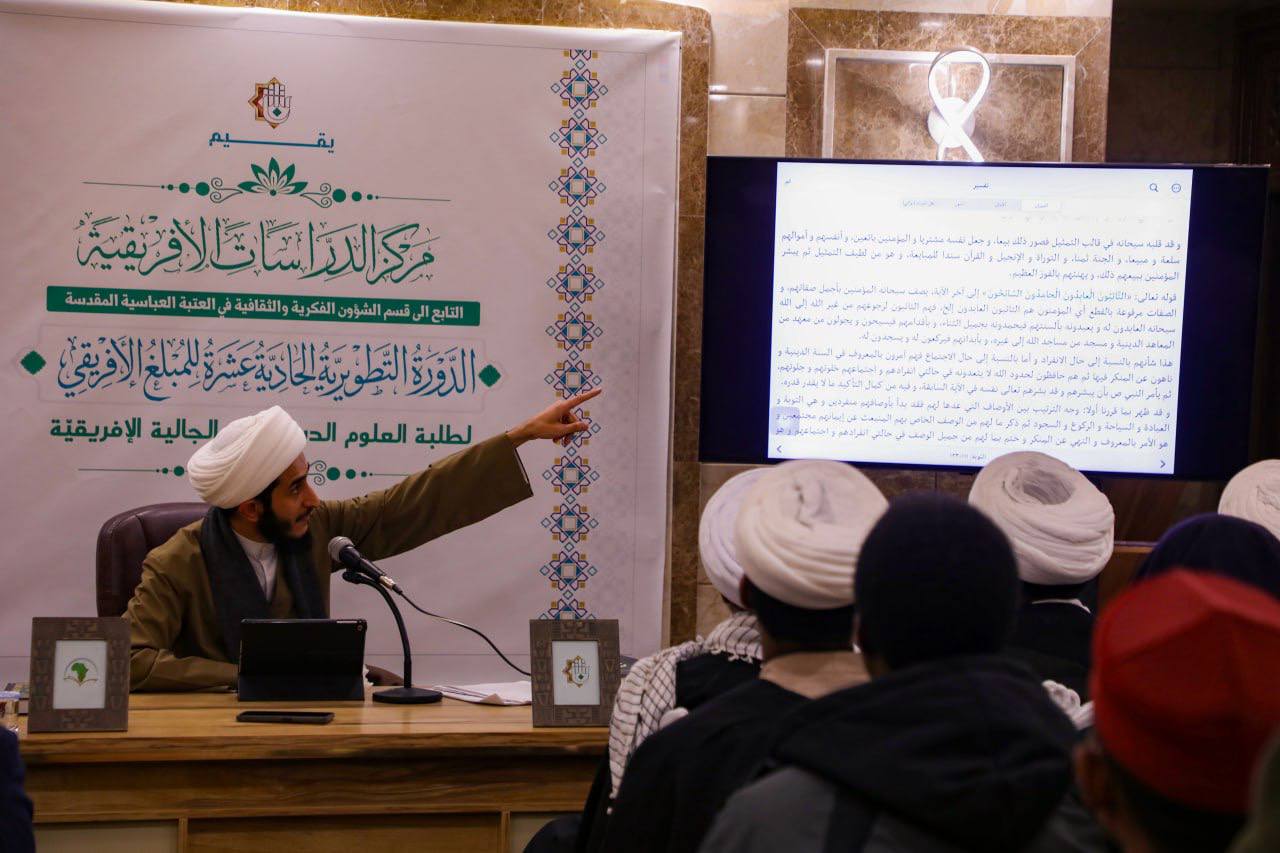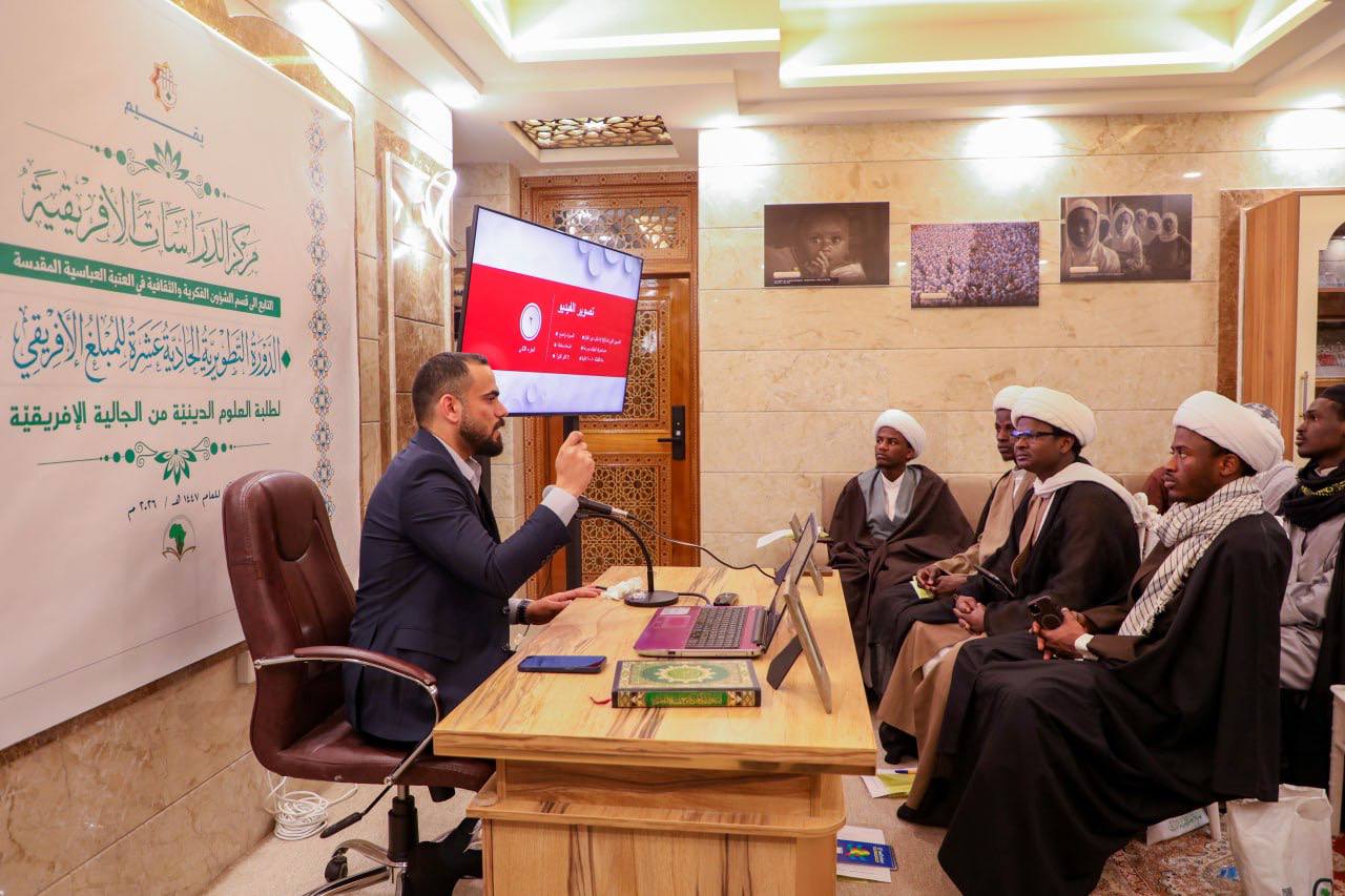وتأتي هذه الدورة ضمن البرامج الدائمة التي ينفّذها مركز الدراسات الإفريقية، سعيًا منه إلى بناء القدرات وتنمية المهارات العلمية والفكرية لدى الطلبة الأفارقة، وتعزيز ارتباطهم بالمنهج الأصيل للحوزة العلمية في النجف الأشرف، بما يسهم في إعداد كوادر واعية وقادرة على خدمة مجتمعاتها دينيًا وثقافيًا.