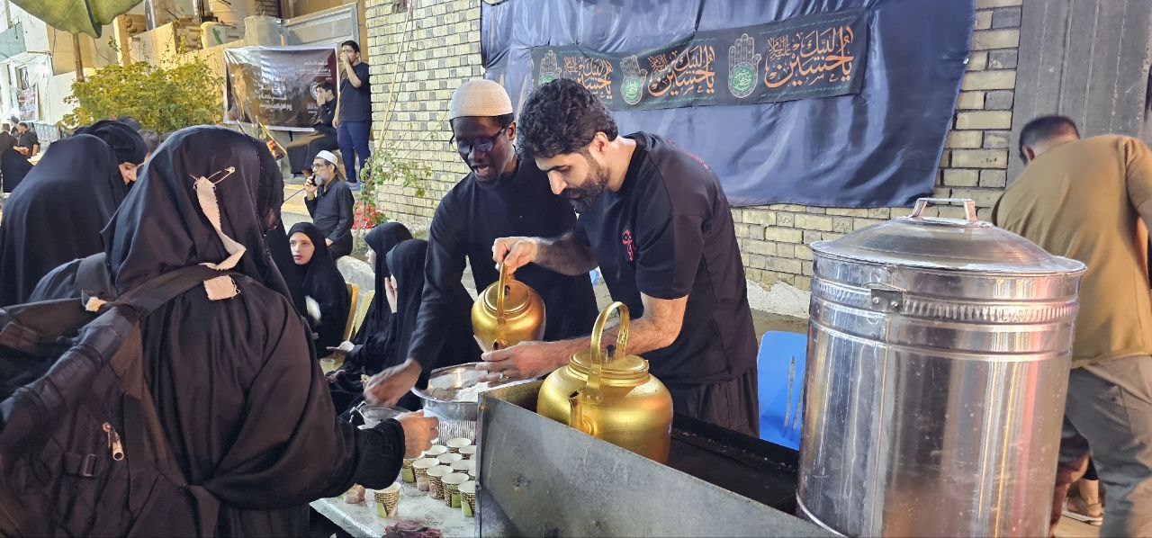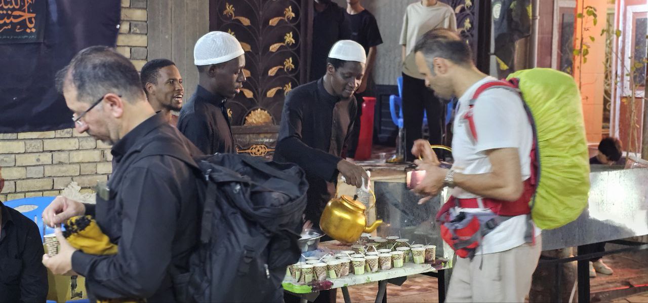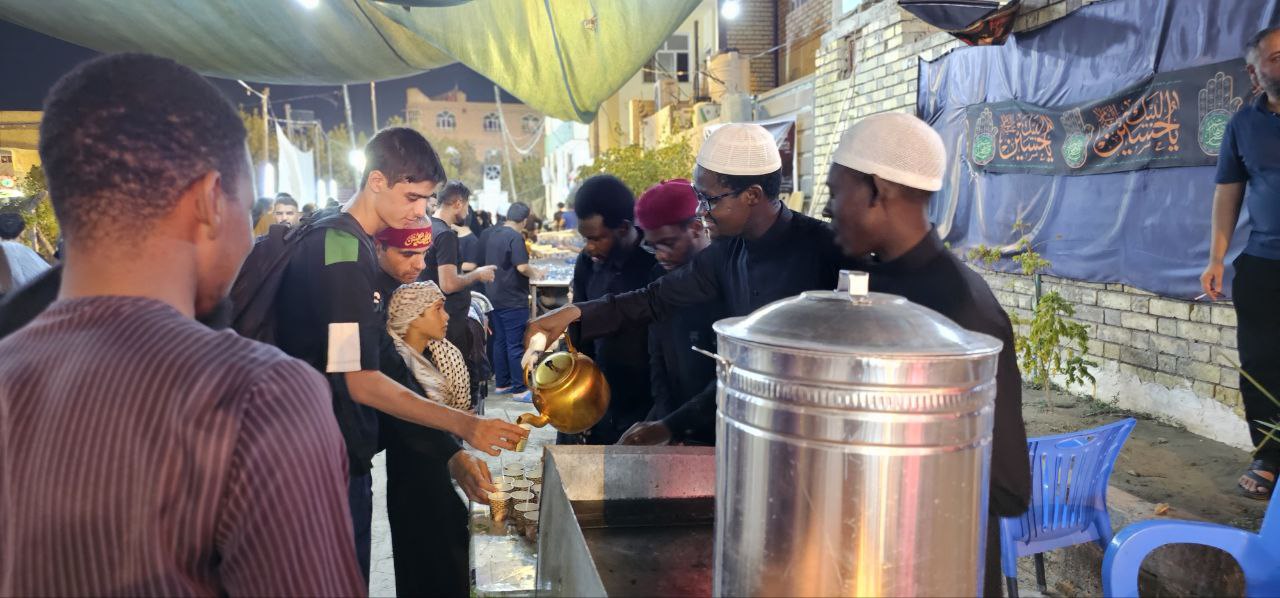منتسبو مركز الدراسات الإفريقية يباشرون بتقديم الخدمة لزوار الإمام الحسين (عليه السلام) على طريق الجنة في النجف الأشرف