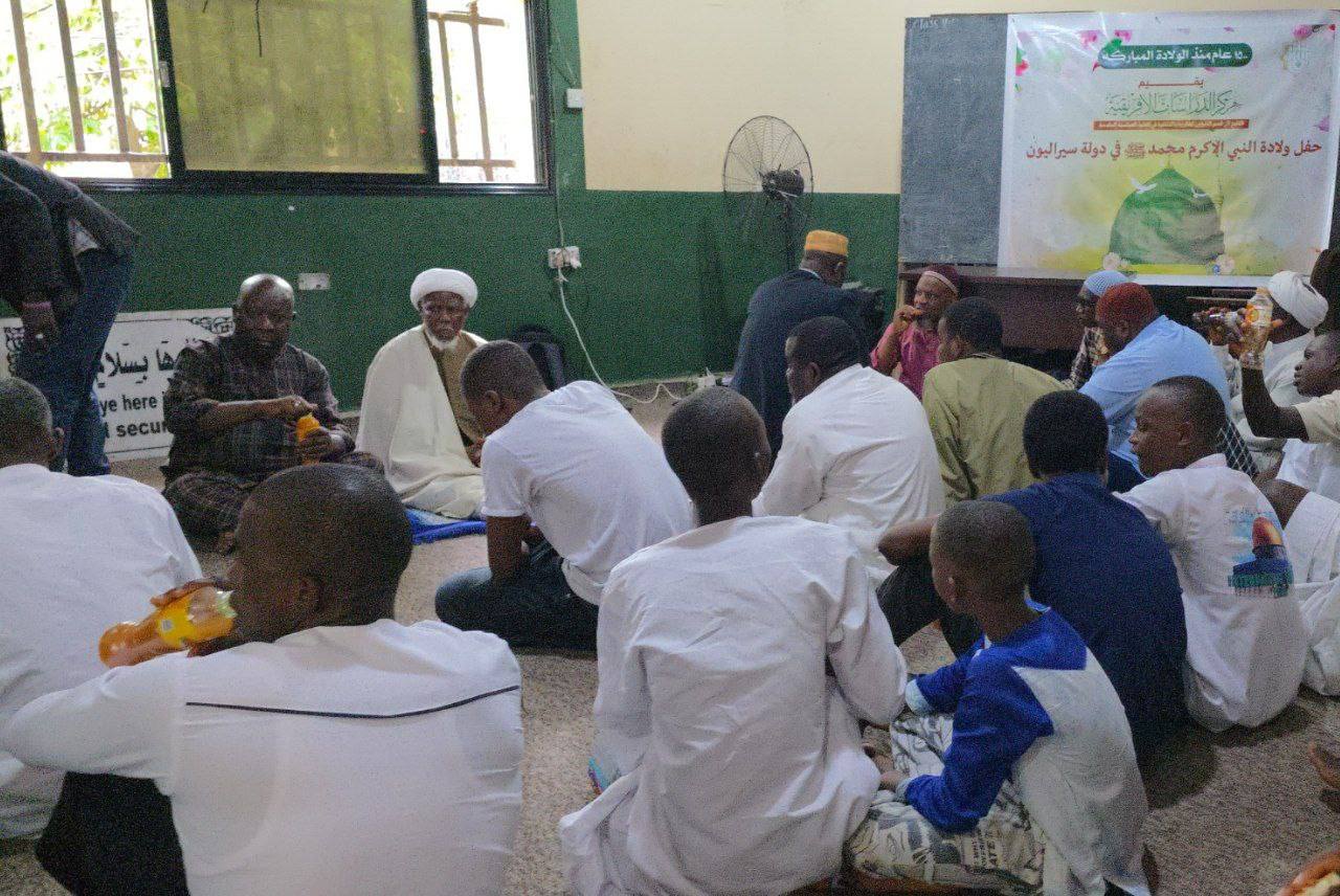 أقام مركز الدراسات الإفريقية التابع للعتبة العباسية المقدسة، من خلال منسقه الشيخ إبراهيم باح، محفلاً مباركاً بمناسبة ذكرى ولادة الرسول الأكرم ﷺ، وذلك يوم 19 ربيع الأول 1447 هـ في مدينة ديفل هول بالعاصمة السيراليونية فريتاون.