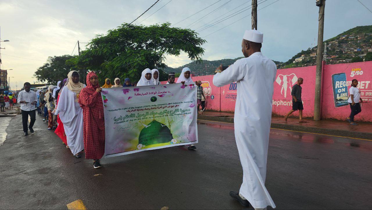 انطلقت المسيرة من نقطة تبعد ميلاً واحداً عن موقع الاجتماع، وصولاً إلى المسجد المركزي وسط العاصمة فريتاون، حيث أقيم احتفال عام بحضور رؤساء وقادة المذاهب الإسلامية. وقد ألقوا كلمات وتصريحات ركّزت على وحدة الأمة الإسلامية، ومحبة الرسول الأعظم ﷺ، وتعزيز التعايش السلمي بين المسلمين.