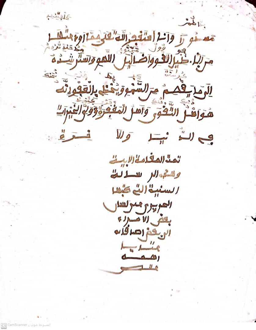 تفسير كامل للقرآن الكريم من تأليف الشيخ عثمان بن فوديو، مكتوب بخط يده، بعنوان كفاية ضعفاء السودان