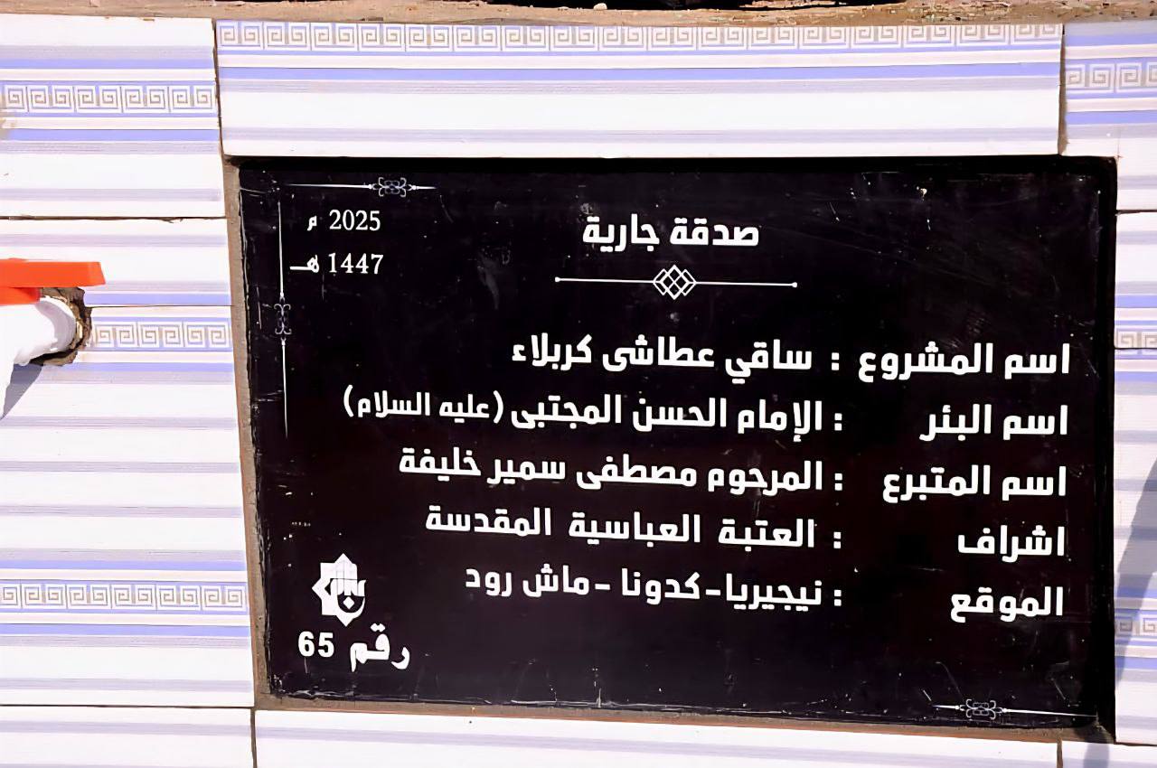 بإشراف مركز الدراسات الإفريقية التابعِ لـ العتبةِ العبّاسيةِ المقدّسة، تمّ بحمد الله تعالى افتتاح البئر رقم (65) في منطقة ماش رود – ناريا، ولاية كدونا / نيجيريا.