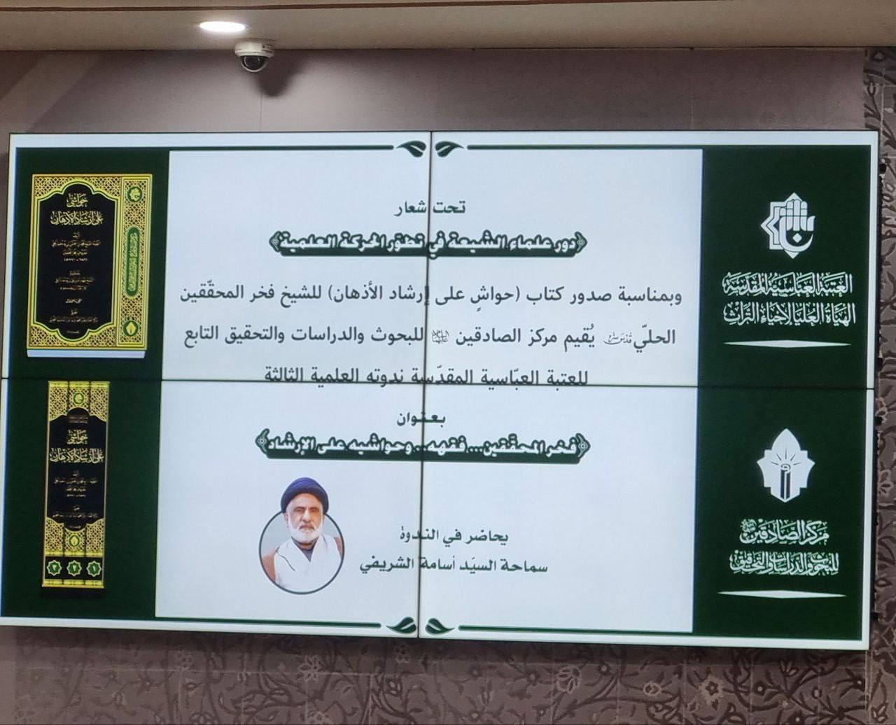 شارك وفد من مركز الدراسات الأفريقية التابع لقسم الشؤون الفكرية والثقافية في العتبة العباسية المقدسة في أعمال الندوة العلمية التي نظمها مركز الصادقين، التابع للعتبة العباسية المقدسة، والتي جاءت بعنوان: "دور العلماء الشيعة في تطور الحركة العلمية"، وذلك بمناسبة صدور كتاب "حواشي على إرشاد الأذهان" للعالِم الشيخ فخر المحققين الحلّي (قدّس سرّه).