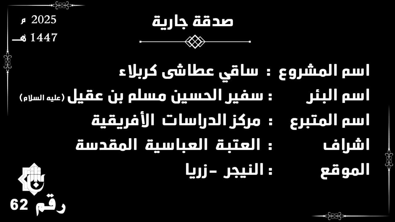 ضمن مشروع (ساقي عطاشى كربلاء) الذي يشرف عليه مركز الدراسات الإفريقية التابع للعتبة العباسية المقدسة،